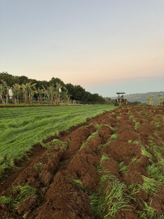 The old mouldboard plough doing the job on the rye grass. Broke about 15cm off the tip of the plough on a huge black basalt pillar rock.. we have a few of them in this paddock.