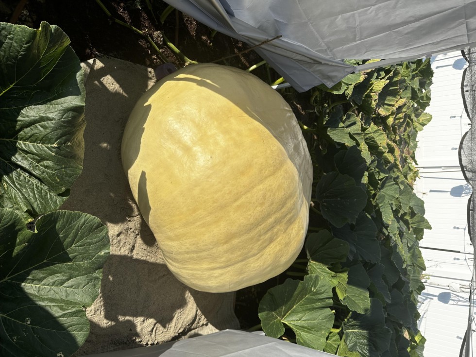 The 1708 is growing steadily. It gets a little sun in the afternoons, which I honestly don't know if that's good or not. Might pick up another wall for the EZ-UP to block that side. The entire thing is under a shade anyway, so it's not full sun. The blossom end might not be visible for much longer. This fruit certainly isn't fighting gravity!