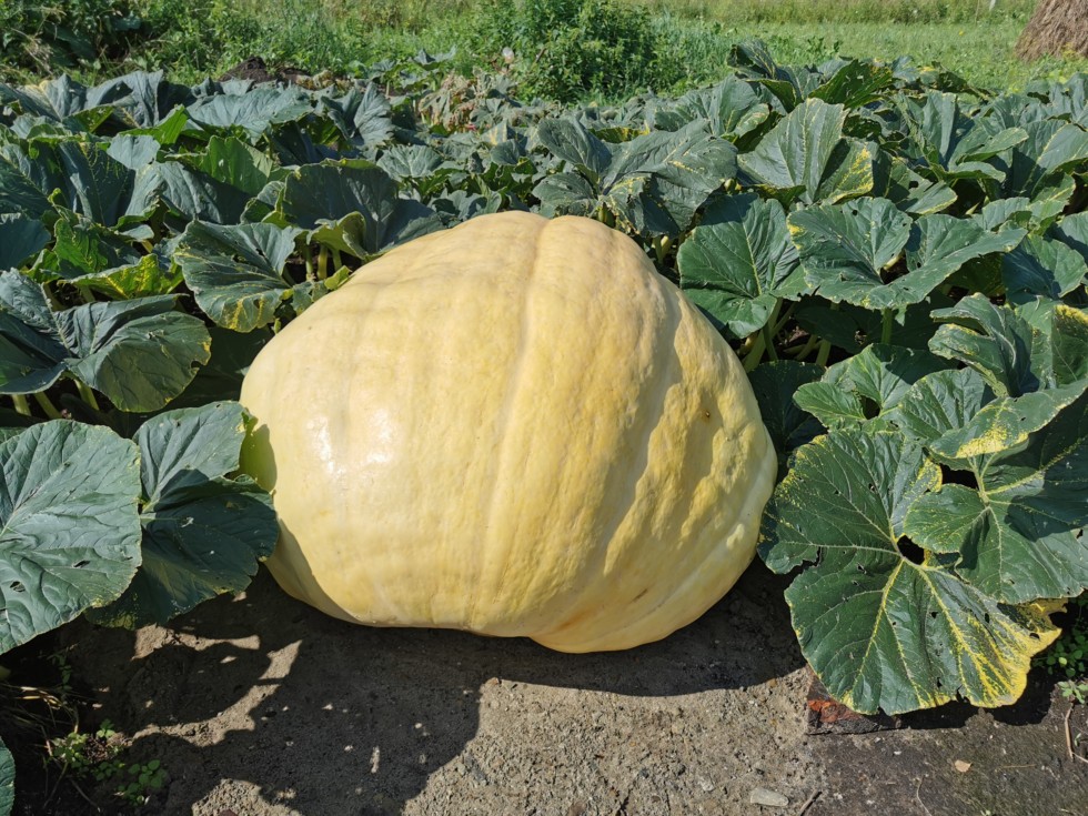 959 DAP 35 is 600 lbs. The pumpkin expands very much at the bottom and sits on the flower.