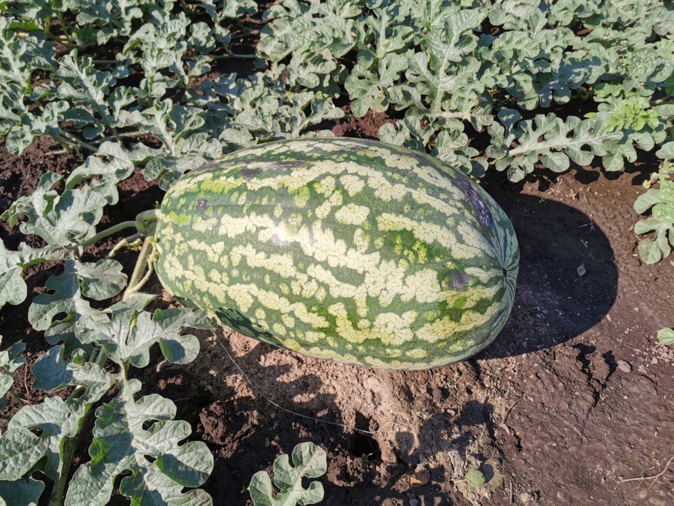 The watermelon "European" is covered in hail scars. The garden var, which was covered with potholes, worked wonders. The base of the rot was removed on the fruit. DAP 20 is about 30 pounds.