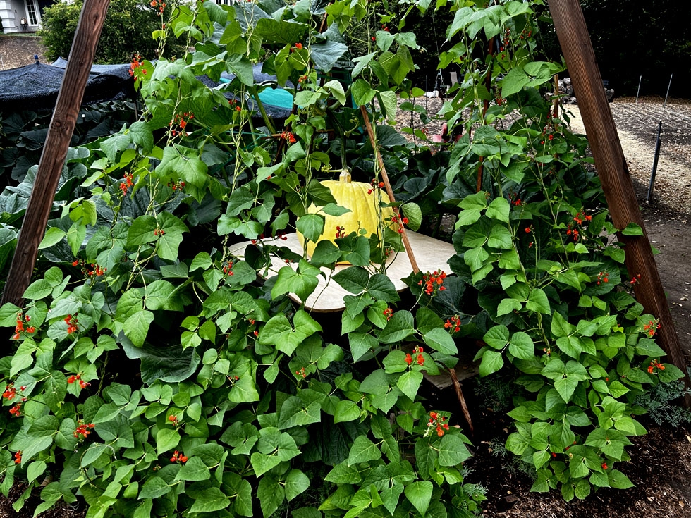 Peek-a-boo � The curtain of Scarlet Runner pole beans is slowly closing in. Amelia does not want to be found...