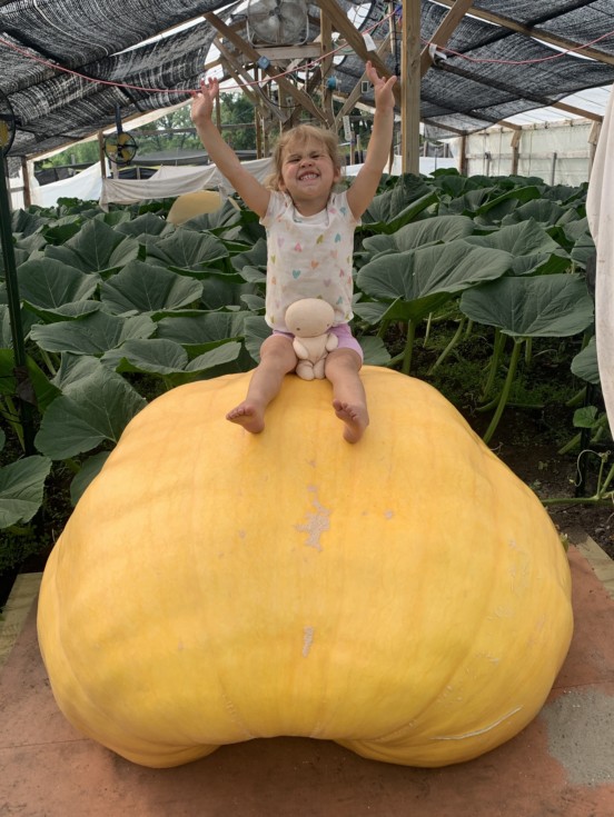 It was another good week for the pumpkins, the girls were excited to finally be able to sit on them! They're averaging around 40 pounds a day now, a little less than last year but they're doing good! The plants are all healthy so hopefully they have a long growth curve! Next Saturday the Manitoba Giant Pumpkin Growers are coming here for their patch tour, so that's very exciting! I think I've only ever had two growers stop here in 12 years. Wormy! 43 days old, 2365 Wolf x 2501 Bernstrom. 815 pounds