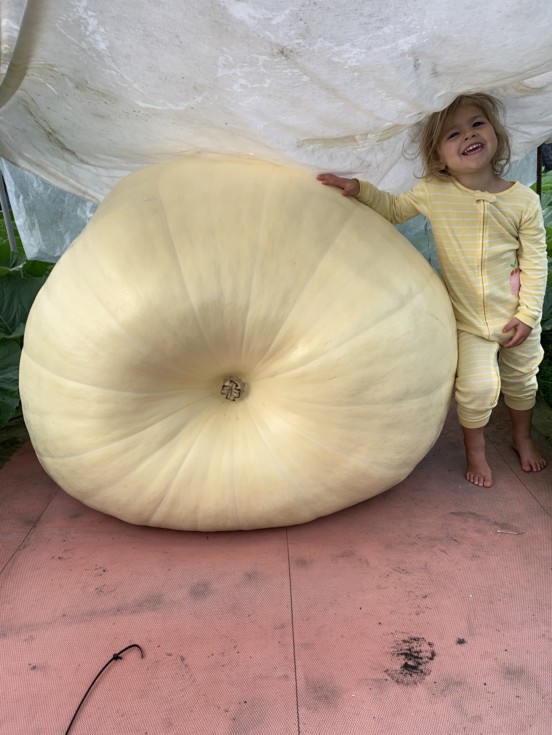 Ant Man! 2560 x 2749, 41 dap, 655 pounds, 34 pound 7 day average. This pumpkin just keeps plugging along!