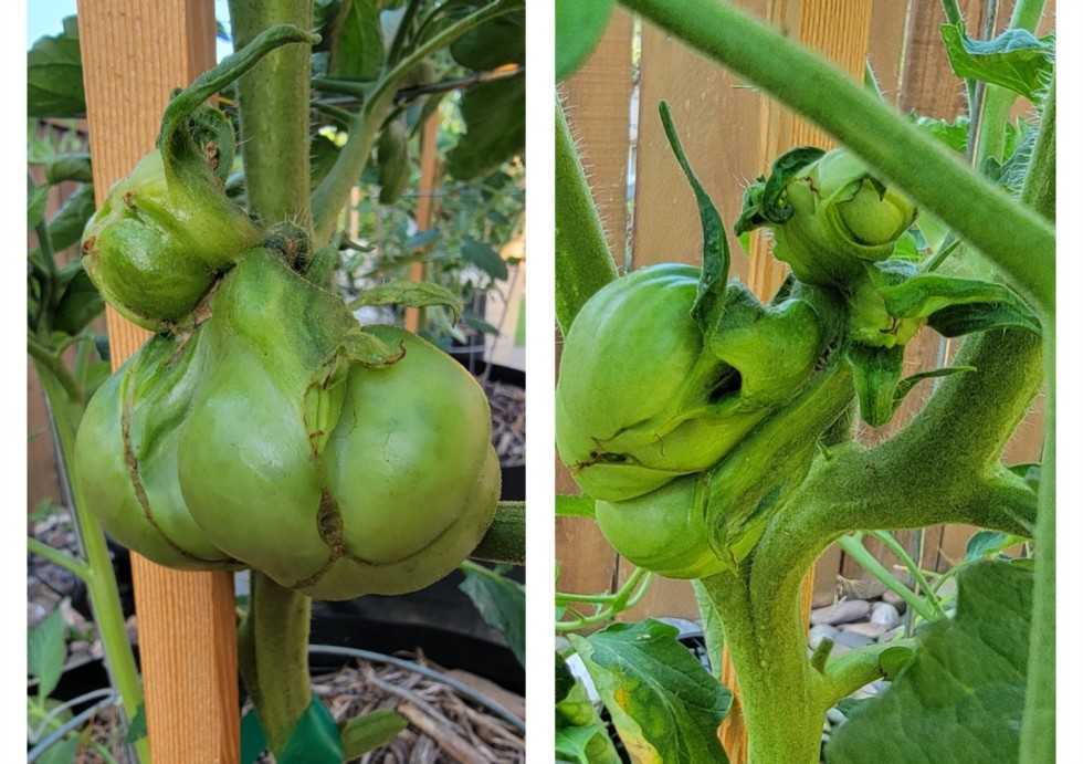 My first time seeing this mutant phenomenon. Wonky truss 1 fruits from 2 different Domingo plants. Too bad Weird Wint isn't still around, he'd appreciate these. Might need to back off on the uranium in my seed soak experiments, lol.