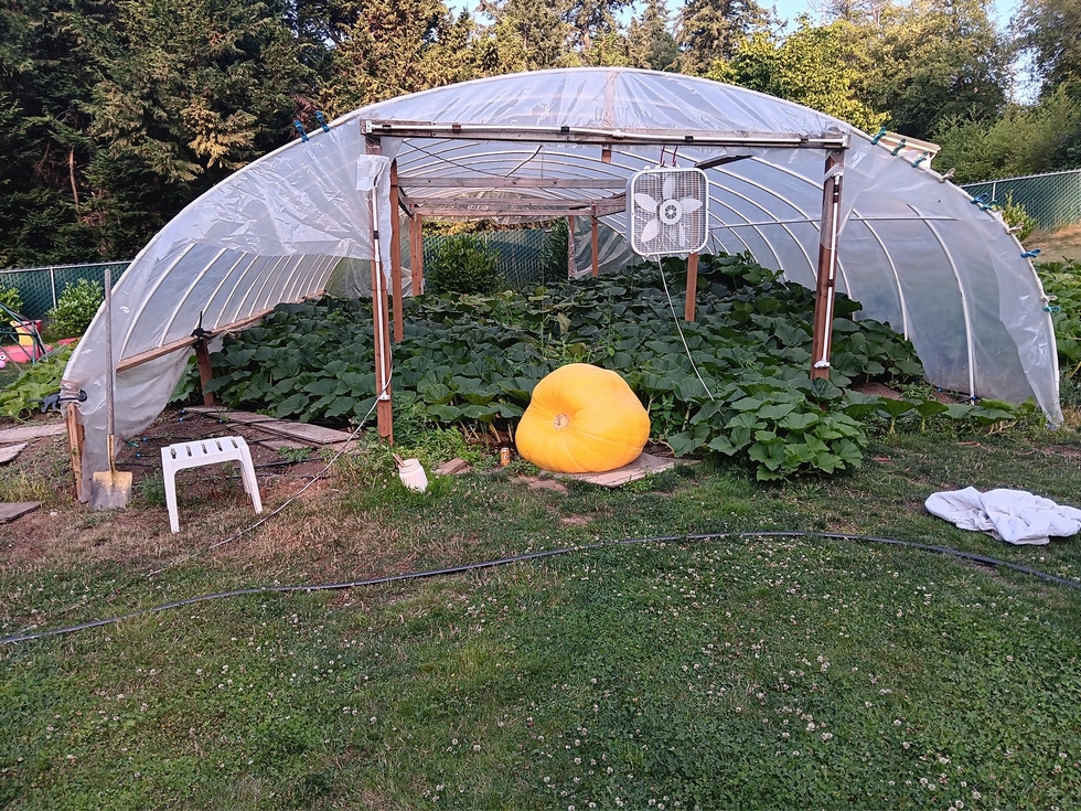 Our temperatures cooled way down with highs in the 60s and upper 40s at night. It really slowed down the growth but the pumpkin is still doing well by my standards. It's the heaviest pumpkin I have ever had at day 35. My personal best of 1223 was at 299 pounds on day 35 and my second biggest of 899.5 was at 358 pounds on day 35. The orange is really starting to darken its going to be a looker.