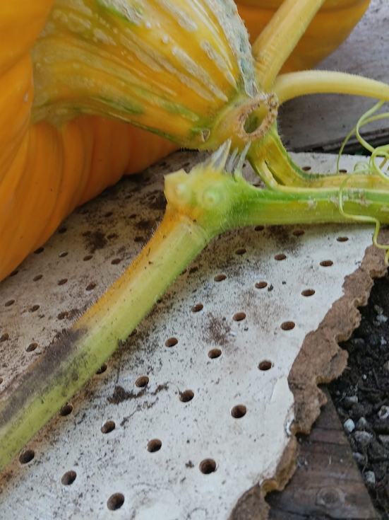 Whoops! Just made the biggest mistake I have ever made growing giants. I have been dealingvwith stem stress on the 639.5 Radach due to the stem being so close to the ground. I moved the pumpkin forward to try to relieve some stress and I broke the main vine right where the stem attaches.