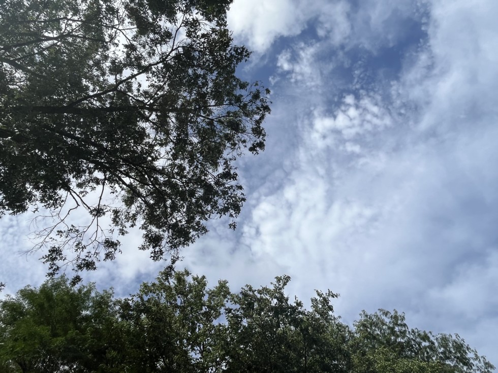 First time sharing a picture from this perspective. I was standing on the black tarp on the west side of my plot. The tree on the left is the one that dropped the branch. The other tree is over the rose garden and stops around my stump.