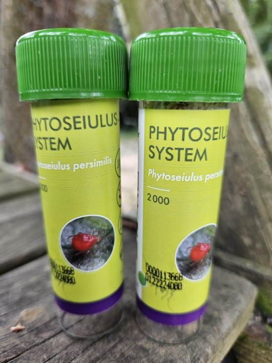 The previous introductions did a very good job as usual, no signs of spidermites at all so far. I know that every year about mid august, spidermites are trying again to come back so spreading one more time the predators are very useful.