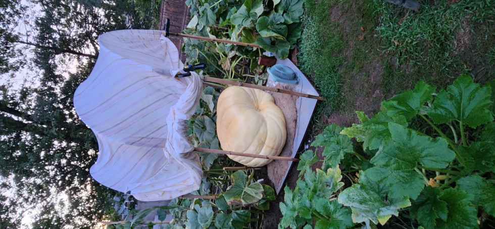Box pumpkin is almost 4 feet wide. Plant took a whooping but the root system is money. Keep em growing in da hood. :)