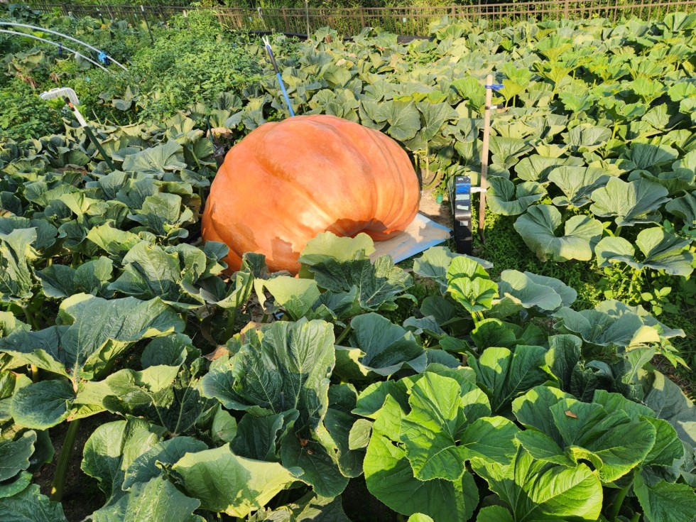 Going back a couple years when I grew my 2,405 pounder someone asked me "Well, you gonna grow a bigger one next year?" I remember telling him I have no doubt that I can grow a bigger pumpkin, but for it to be this big, deep orange, great shape and just overall an absolutely beautiful specimen. The odds of that happening would be like lighting striking twice in the same place.....