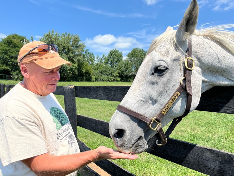 Our favorite and one of the first to come to the farm was Silver Charm. He is the oldest living Kentucky derby winner who also won the Preakness and lost by a nose in the Belmont to just miss out on the triple crown.