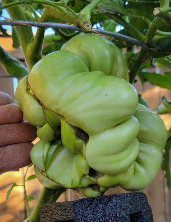 This the resulting fruit that started off looking like a tomato worm from July 30. It's on my 10.46 LaRue plant. DAP 20 and 20". Pretty good trajectory and looking solid.