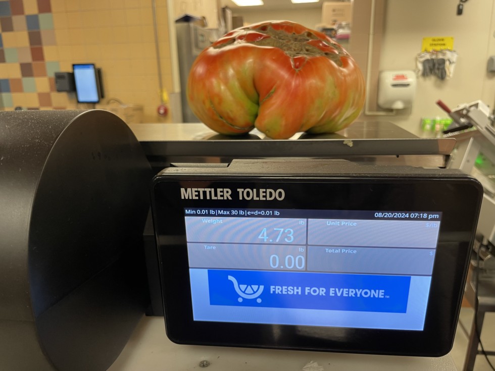 First tomato I weighed yesterday, from my 8.36 Strickler 21'