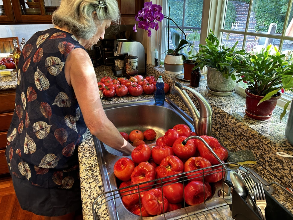 Red Rush � Diane processes 80 pounds of tomatoes into 8 gallons of tomato sauce and soup. So far I have harvested over 340 pounds of tomatoes from my 6 plants. No exaggeration. They were coming at some 20 pounds a day for over two weeks. Best harvest ever. Our friends and neighbors seemed very happy to help...