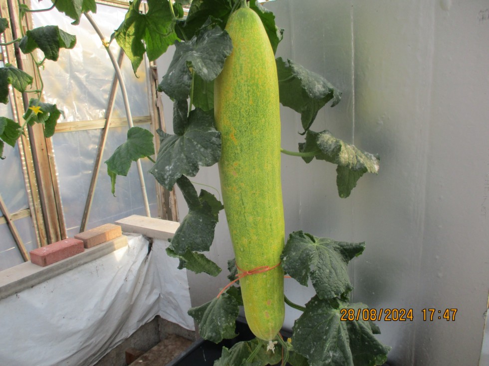 Heavy Cucumbers are growing better, this one has moved very quickly, however mildew starting on the leaves may slow it down.