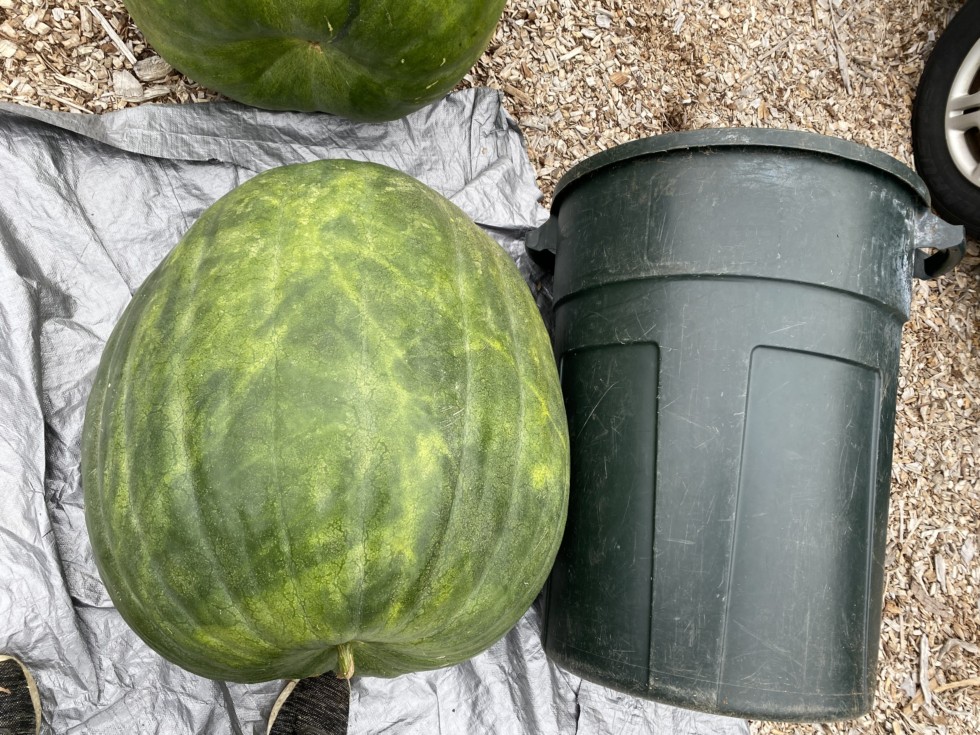 So after finding the first melon with the rotten bottom, I decided to harvest my second biggest jumbo black diamond melon. It was nearly as big as the 159.6. Unfortunately after and inspection it had a soft spot too! Strike two! I feel like this year has been a big strike out. Hopefully I can still get some decent giants on the scale and redeem this difficult year.