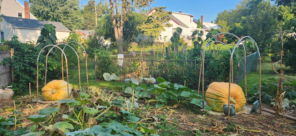 2,222 Geinger (Godzilla) plant got two nice pumpkins off two split secondary vines. Not bad poundage off one seed 15 miles from New York City:)