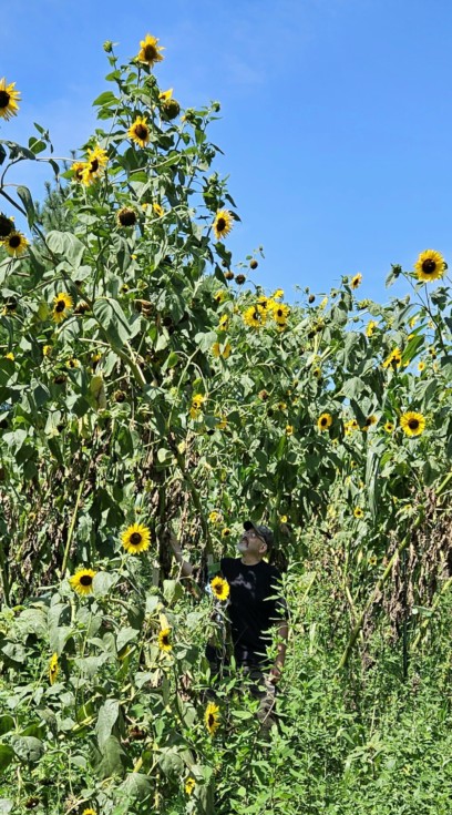 giant 16'10" tall multi-headed sunflower
