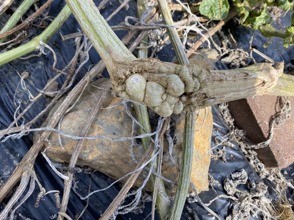 This is a really cool picture of the vine that my 198 melon was growing on. In an earlier diary entry I showed how the mice had nibbled this vine in half. Obviously the plant threw out Lots of callous tissue and nearly healed itself! that's amazing!