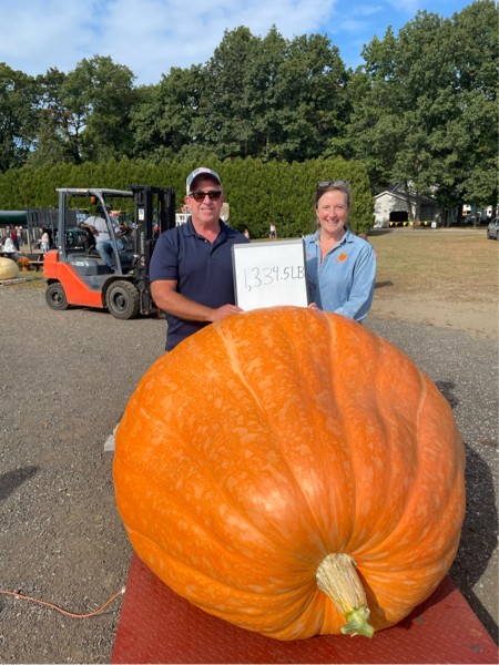 Here we are with Merry Berry (1065 Young x 839 Sandercock) on the scale at the Vermont weighoff. She weighed 1334.5 pounds and came in 4th place.
