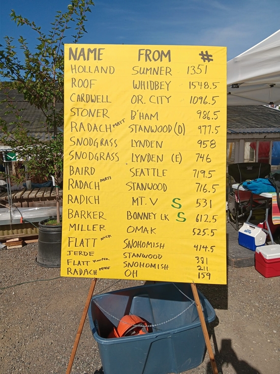 Final standings. If I would have brought my big one it would have finished 3rd. Still trying to eek a few more pounds out of it to beat my personal best of 1223.
