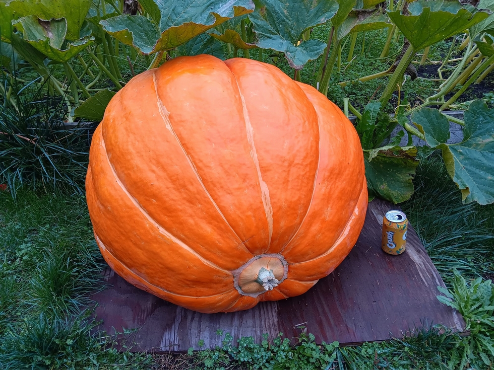Day 60 on the 144 Radach in the 150 square foot contest. I lost my first plant in a rain storm just before the vine was about to lay down and had to start over. As a result it was a really late pollination on August 9th. It hasn't grown at all in the last 10 days. I didn't keep up on the pest and disease control and it has a bad case of spider mites and powdery mildew. 3/4 of the plant is gone and what's left isn't healthy at all. The fruit is estimating 261 pounds. It's small but it's pretty and the color is darkening up nicely. This one will go to the Kristofferson Farm weighoff on Saturday.