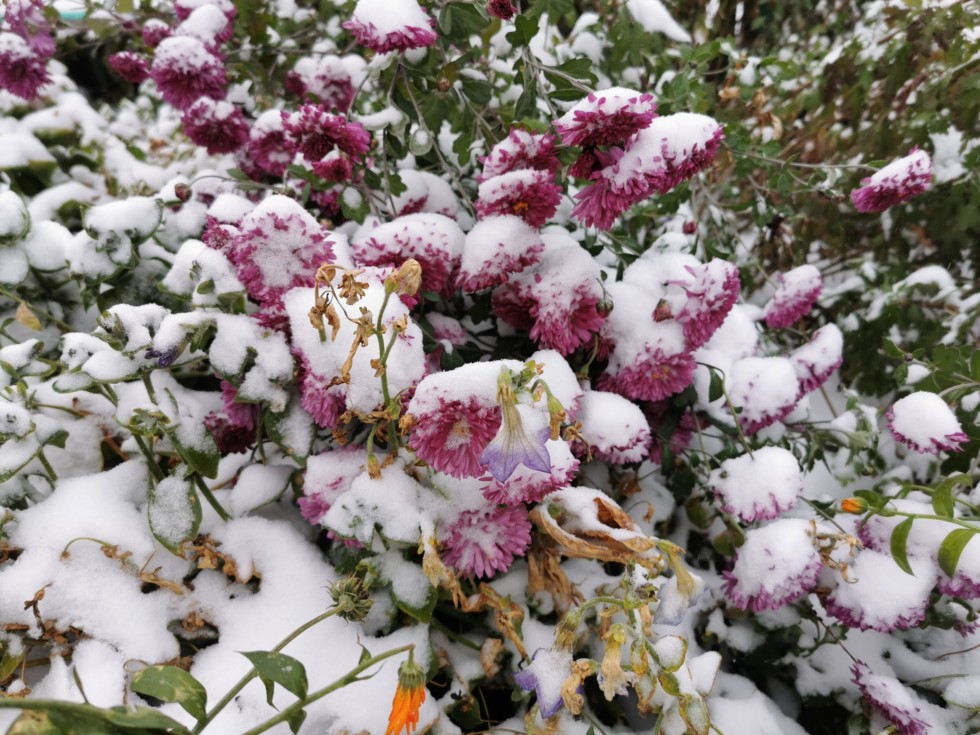 The first snow fell today. And during the day it was like a winter snowstorm.