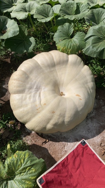 In 2022, I once again grew Hollands seeds and this time I decided to give it a bit more effort. I expanded the patch to 800sqf, learned about burying vines and fertilizing and many other things. But alas, my pumpkin succumbed to some sort of internal rot early on. That wrinkly spot would eventually liquify and cave in. I also started making youtube videos that year. Feel free to check out the youtube channel "Nicks Big Pumpkin". You might like it!
