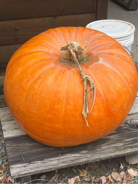 This was on a secondary on the 2198 Haist that I let grow blossom side down. It makes for a great porch pumpkin.