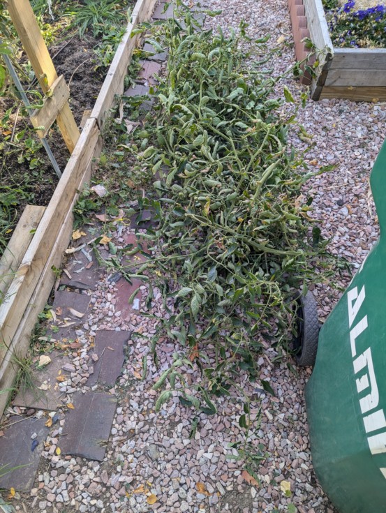 The "just let everything grow wild" experiment was a success......at what NOT to do. As I cut down the plant you can see how much energy probably was wasted on foliage and not the tomato. The main vines were also much smaller as the plant was splitting up the energy between several. It also made it nearly impossible to keep up with any sort of maintenance type pruning.