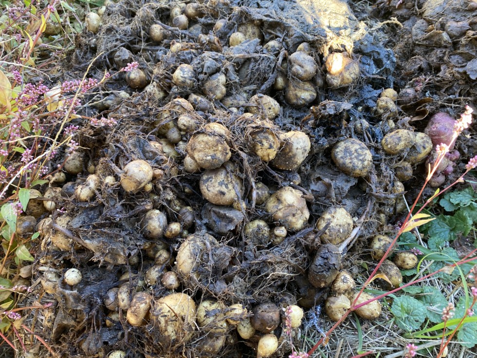 I had some potatoes that were in cold storage for over a year. I had forgotten about them. I re-discovered them today. They had all rotted and they grew these new little ones. This all happened Without any sunlight or any care whatsoever. These potatoes could be eaten or They could be planted