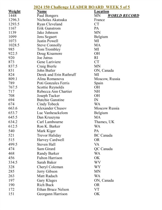Here is the 150 Challenge week 5 of 5 update. Lots more of the 109 contest entrants (pumpkin/squash) weights came it this week, Hope you enjoyed this international contest and my BP Dairy updates