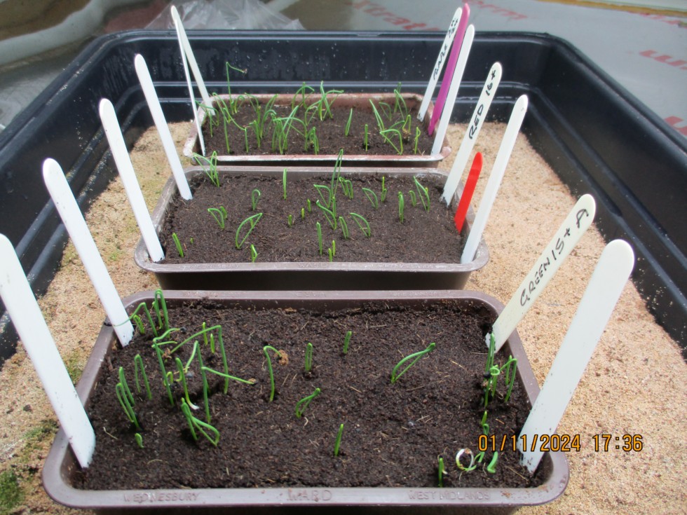 Sowed my giant Onion seed 24th Oct. and most is now through, the '24 seed showed first but the two trays of '23 seed were not far behind.