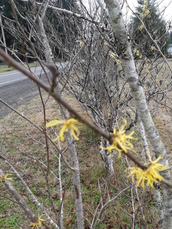 Late November... is a strange time for a tree to be blooming. Not sure what this is and the blurry photo isnt helping.