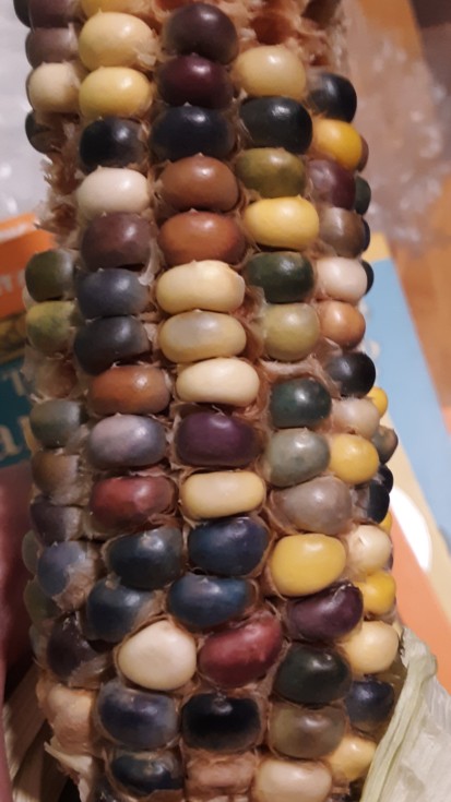 Not the most srikingly beautiful but on close inspection this ear has probably 50 colors in it and some are rather unique shades I have never seen before?? What if I rearranged all the kernels into a colorwheel. Maybe that would really show the color range. Maybe later.