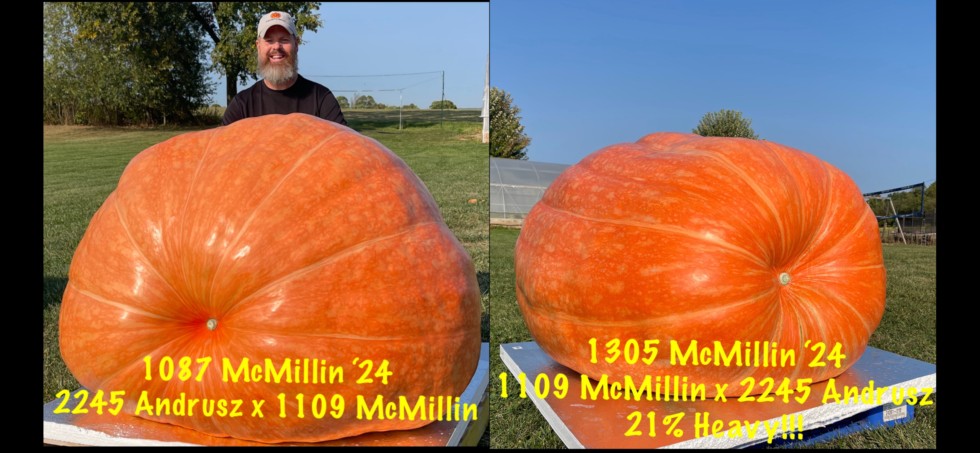 Looking at my diary from last year, I realized I never showed the final picture of the pumpkins that were in the greenhouse. They didn't get as big as I wanted them to due to my overwatering and plant age, but they sure came out beautiful. Here's a photo of both pumpkins, they were crossed with each other so they should make some beautiful pumpkins plus the one being 21% heavy is kinda an added bonus. Also, I'll leave a YouTube link below for both pumpkins from the time they were a seed to the end of season.