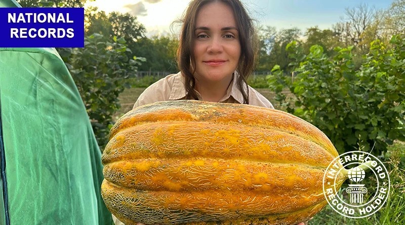 The heaviest cantaloupe melon grown by Elena Agafonova (Russia) weighed 13.72kg (30.2lbs), which is a Russian national record. Melon was grown from UK record seeds from Kevin F. This 2025 season, Russian growers will also grow from Tony Prochaska's seeds 05 August 2024