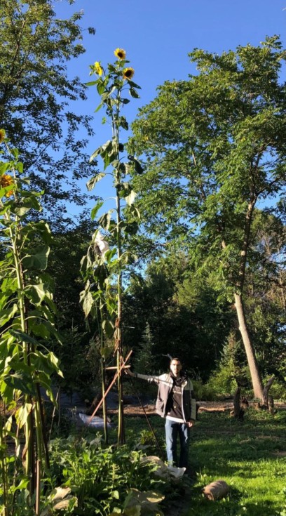 The longest sunflower 750cm (24.6ft) in Russia was grown by Ivan Popov (2024) from 21.06 Grendel 2023 (642cm)