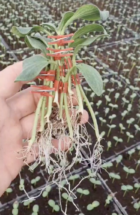 Watermelon (Carolina Cross) grafted onto 8 roots of rootstock by Roman Ponomarev (farmer from Russia) The maximum number of roots on the watermelon that Roman grafted was 20 pieces (unfortunately, there is no photo) It doesn't matter how many roots a watermelon has, the result will be the same.