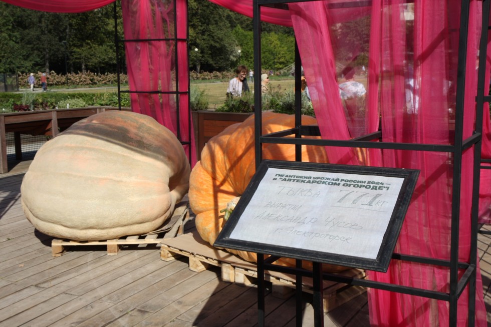 And now I want to show you some photos from the exhibition of giant pumpkins in the Moscow Botanical Garden.