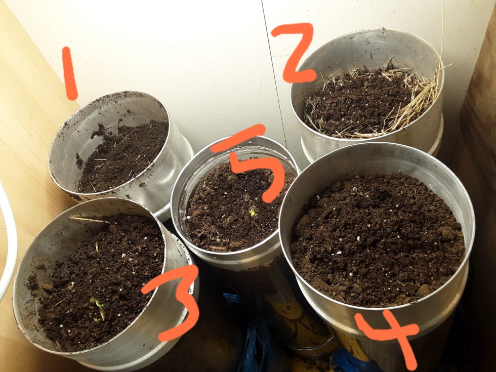 Final setup. I added a myco product to the miracle grow (5) and "disturbed" soil (4) tubes. For the rest I will give the native myco the benefit of the doubt. Test tube (1) is from very near the exact spot where I grew the 9.5 and 7.69 lb tomatoes. Test tubes (2) and (4) are from the future 150 sq ft patch. Test tube (3) is from the main patch which grew the 1677 squashkin in 2023 and the 202 Clayton bushel gourd in 2024.