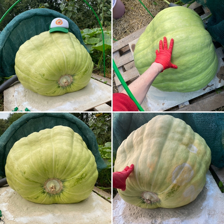 I wanted to show Sebastian Jany what squash was made from his seeds. More precisely, this squash was already from the Jade Turtle squash in the previous photo post. And it grew last year. The funny thing is that it's quite light in color, like a green apple. At the same time, a dark green one grew from the same seeds of a member of our Club (photo in the previous post). It's amazing. Roulette with color and shape. I love giant pumpkins for this, for their unpredictability and magic :) Unfortunately, this squash has rotted, I made a fatal mistake, I spilled it well with water the day before, and at night there was a storm that no one predicted. A day later, I arrived at the botanical garden where this squash grew and saw these spots. It may, of course, start to rot earlier. But surprisingly, this process happened very quickly, I could not immediately remove the fetus and left it for another couple of days. And when I returned, he deflated like a balloon. It's a pity, but I still remember this wonderful squash.