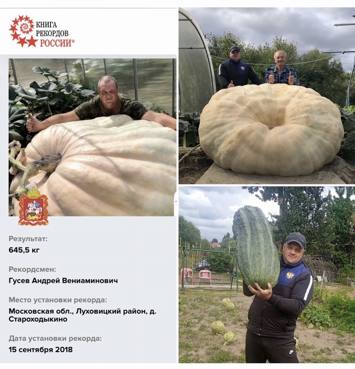 I want to tell you about a man who grows giant pumpkins from Russia. Who is a multiple Russian record holder. His name is Andrey Gusev. He has been growing giant pumpkins for more than five years and is increasing the weight of the pumpkins every year. The largest pumpkin weighed 771 kilograms (almost 1,700 pounds). Last year, unfortunately, he had to cut off the pumpkin earlier, breaking the 600 kg mark, because the whip and the pumpkin stalk began to rot. Otherwise, he would have beaten his own record, he had no close competitors at that time. He was also the first in Russia to grow marrows, just over 45 kilograms. Andrey Gusev is a role model for us in Russia, and everyone wants to achieve the same results. We jokingly call him the Russian Pumpkin King :) And in general, he is a very good person, self-sufficient, hardworking, and we are sure that this year, he will again occupy the pumpkin Olympus.