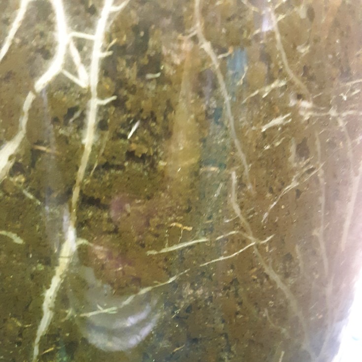 Finally I'm seeing that I stressed the plant in back enough that I think some of its roots are dying?! It had nice looking roots for awhile they looked as good as all the other plants despite the foliage being small and yellow. But a small yellow plant cant sustain a big healthy root system... I think on the right the roots have died, or the healthy white part has died. On the left, a section in the middle of the healthy white root is also beginning to turn into "overcooked asparagus". So I finally caved and added Jacks fertilizer to this plant too, but I suspect it will not bounce back quickly, since it has lost maybe half its roots now. Sometimes a plant will bounce back quickly, other times it will just appear diseased and languish... its this unseen damage (or maybe, the still surprisingly healthy roots) under the soil that may determine if they do or dont bounce back.