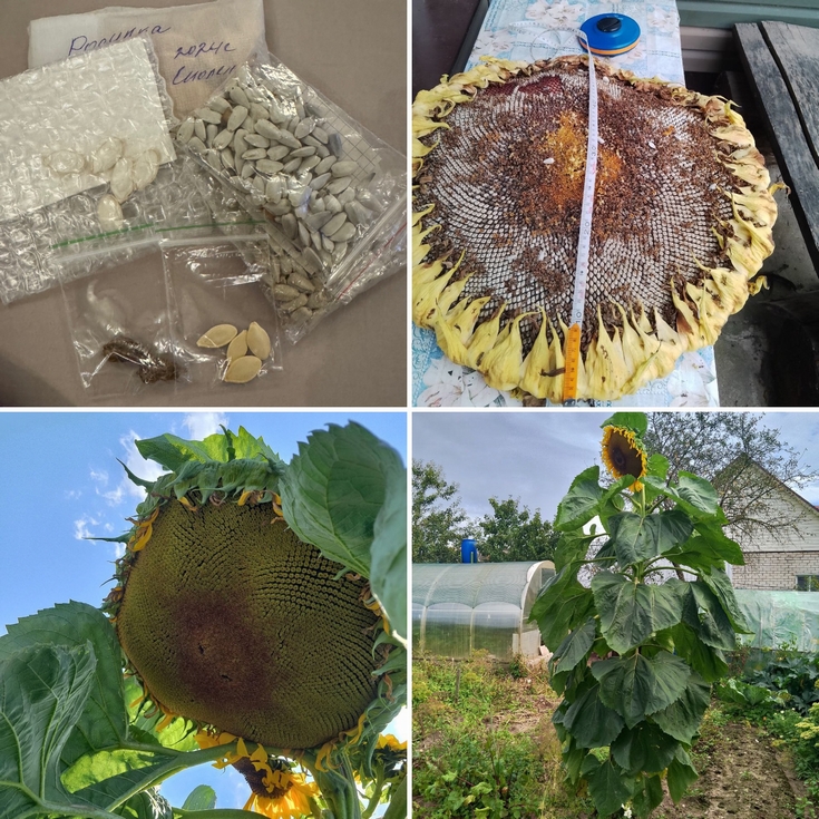 Today I received the seeds of a giant sunflower, a Russian record of 59 centimeters, just over 23 inches wide sunflower head. It was grown by a member of our club of growers of giant pumpkins and vegetables, she grew this sunflower as part of the competition. This sunflower was grown from the sunflower seeds of Kevin Fortey's record. Which weighed more than 6 kg. This year, as part of our competition, we will grow sunflowers by the weight of a head, and we will slightly diversify the competition option. It will be the same for the width of the sunflower's head. By the way, if anyone needs it, I can send the seeds as a gift. Or exchange with any of your giant plant seeds. I recently sent a parcel of seeds to the USA and everything arrived safely. So I'm ready to send seeds, sunflowers, or from my pumpkins and murrows to anyone who needs them.