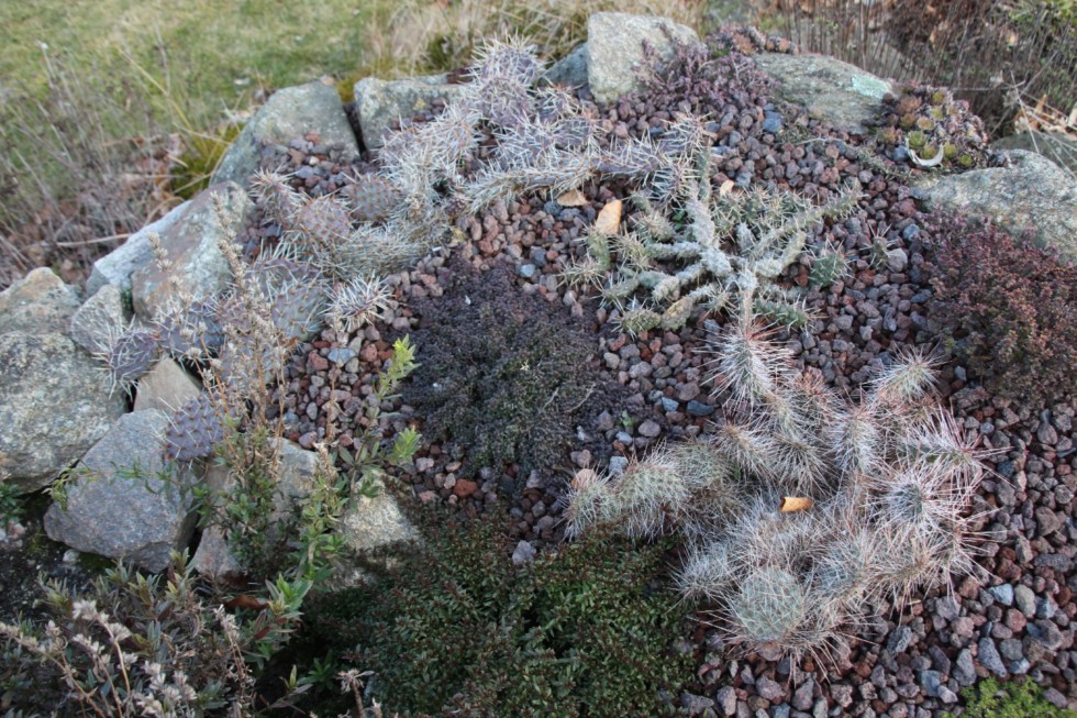 My frost hardy cacti in 'winter mode'...just hanging around and, in between, doing nothing just for the sake of having a rest from all of the 'hanging around'.
