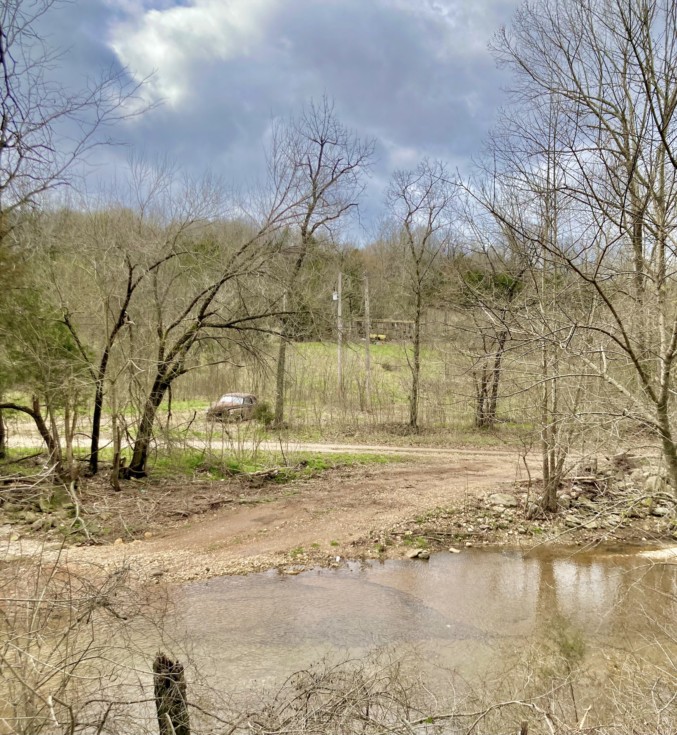 Missouri\Arkansas border viewing Arkansas. Cedars are swollen, grass is greening and amphibians are on the move with the rains. Spring is very near.