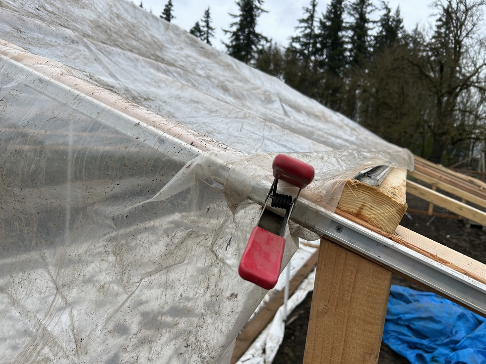 I figured out that if I cut my big piece of plastic into 3 smaller pieces, used some clamps & had everything laid out & ready to go that I could do it without having to beg someone to help me. It is nice not to use up too many favors at this point of the season.