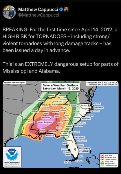 I am headed to the Alabama to chase a major severe weather outbreak with a level 5 out of 5. This will be the most dangerous storm chase l've ever done but have a team of 3 people to do this safely! Another 9 hours to go with a total drive time of about 20 hours. Stay tuned for updates tomorrow