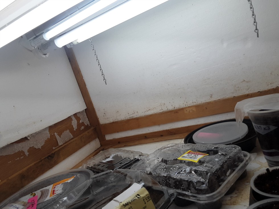 Germination box is up and running. I learned that fluorescent tubes are no longer being sold in my state. So I guess those days are over. These are LED tubes, except the one tube in back is still a flourescent tube.